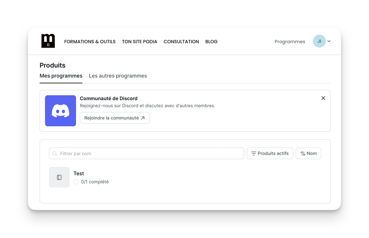 Discord, c’est un espace dynamique. Une salle de discussion. La communauté Podia est plus calme, comme un forum.