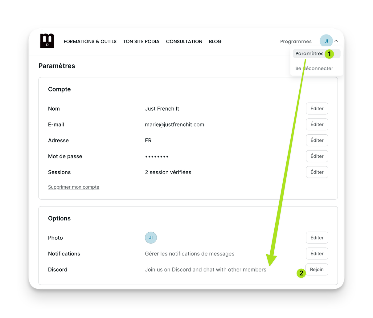 Donc, tu vas paramétrer Discord et Podia pour que les clients qui achètent la formation reçoivent l’accès à ton serveur Discord.