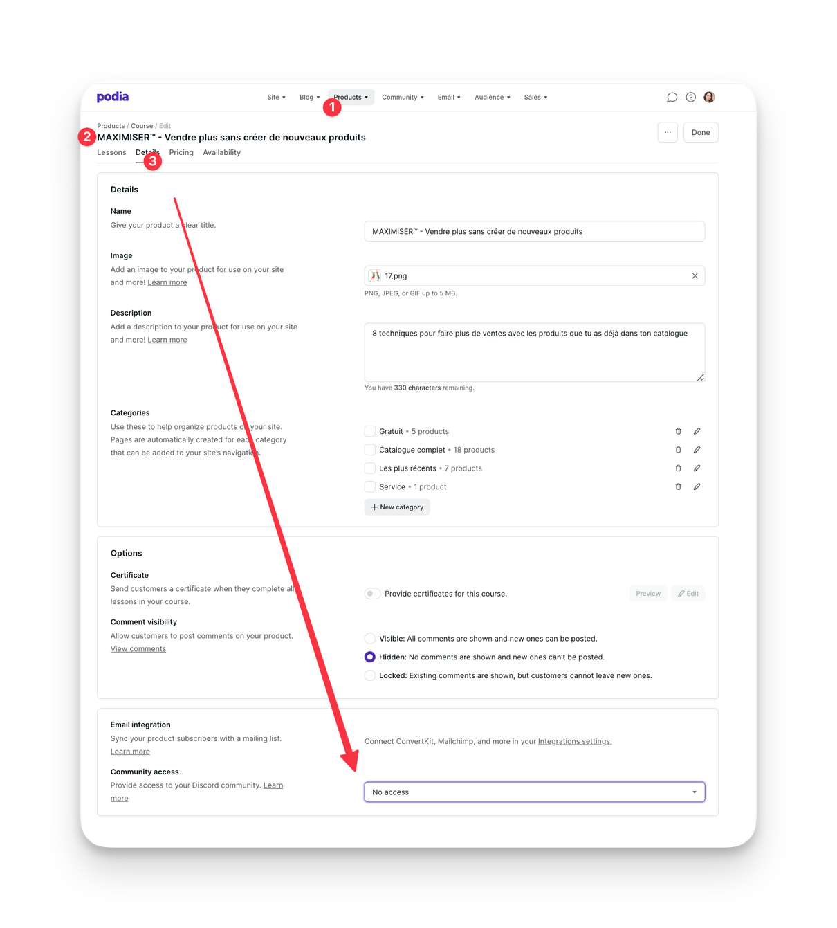 À partir de là, tu vas pouvoir donner accès au serveur Discord dans les paramètres de tes produits.