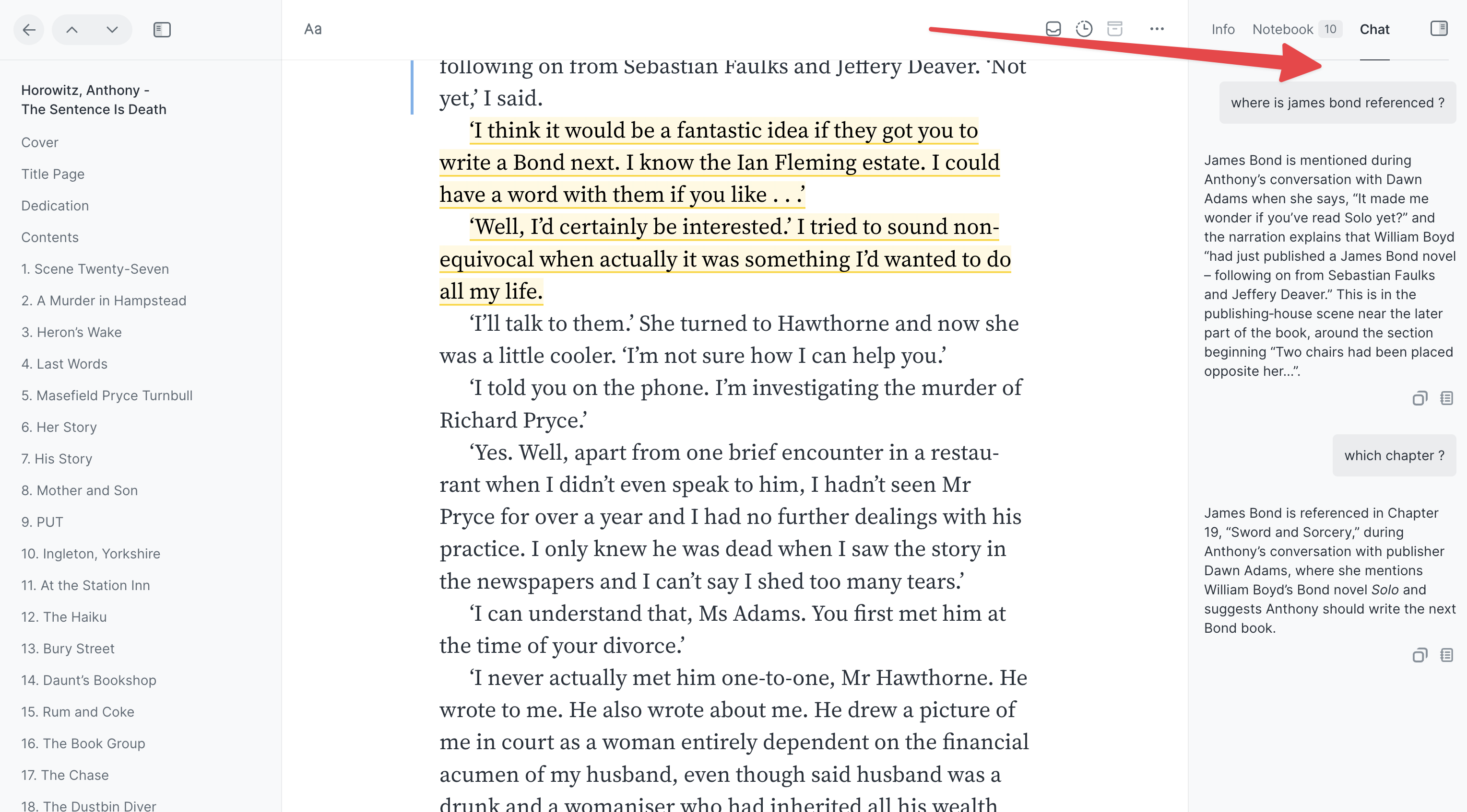 Dernière fonctionnalité dont je veux parler — pas encore disponible sur mobile mais ça va venir. Tu peux avoir une conversation avec un document. Poser des questions directement sur ce que tu es en train de lire.
