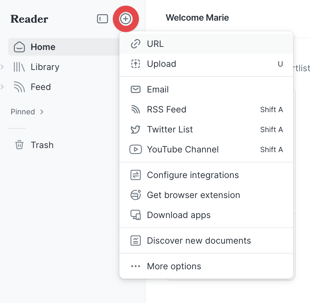 Dans l'application, c'est aussi simple que de coller une URL. Tu as un petit "+" ici qui te permet de :