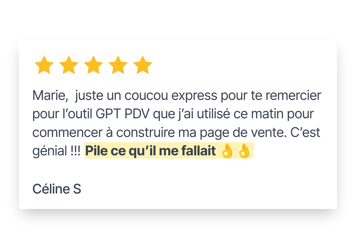 Absolument ! Si tu sais parler ou taper sur ton ordinateur, tu sais utiliser GPT-PDV. GPT PDV te guide à chaque étape, donc même si tu n'as jamais écrit une ligne de vente de ta vie, c'est ok.