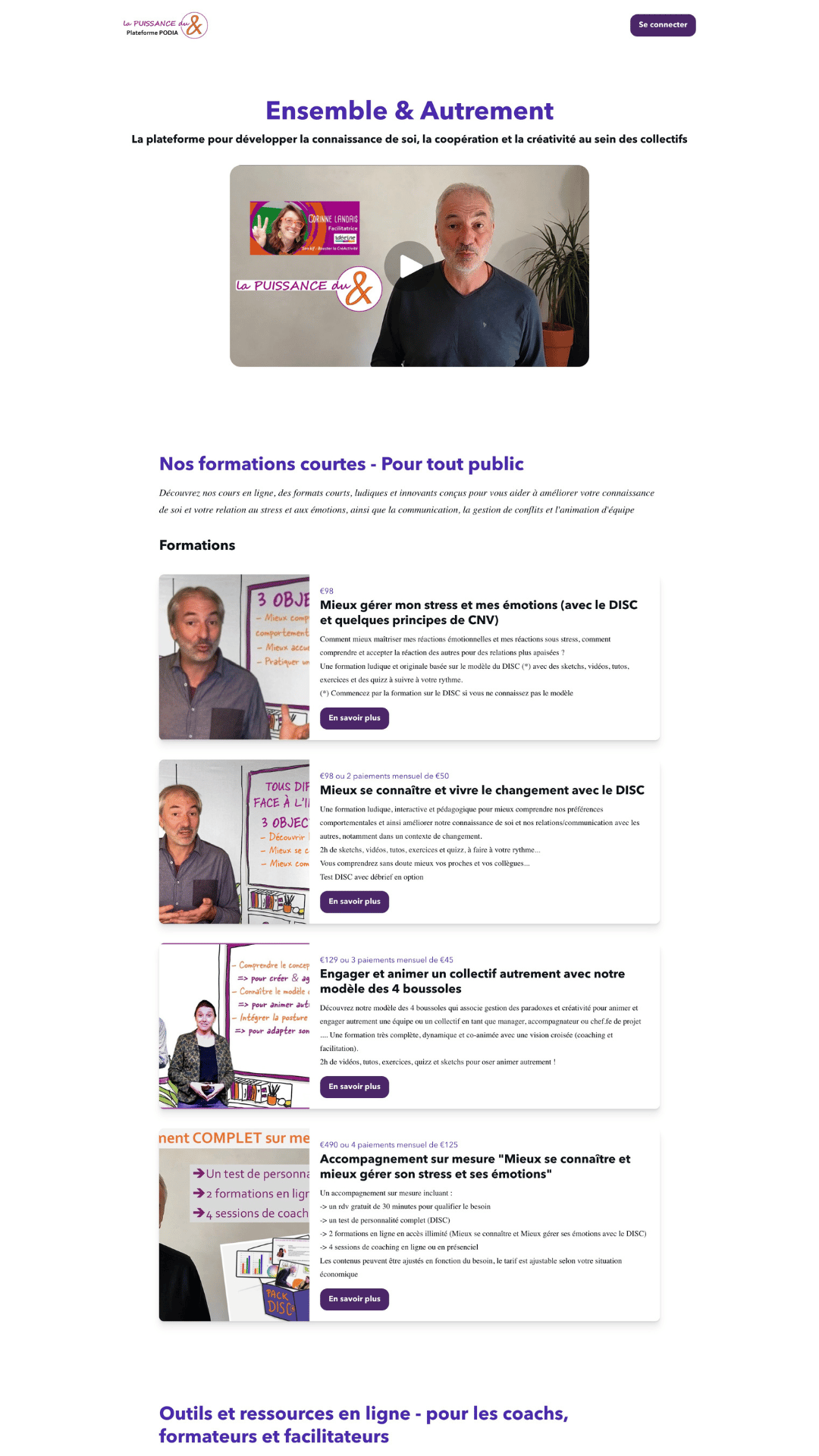 Les sites présentés ici sont entièrement réalisé sur mon site Podia. Ce sont des pages (car on reste sur mon site Podia actuel).